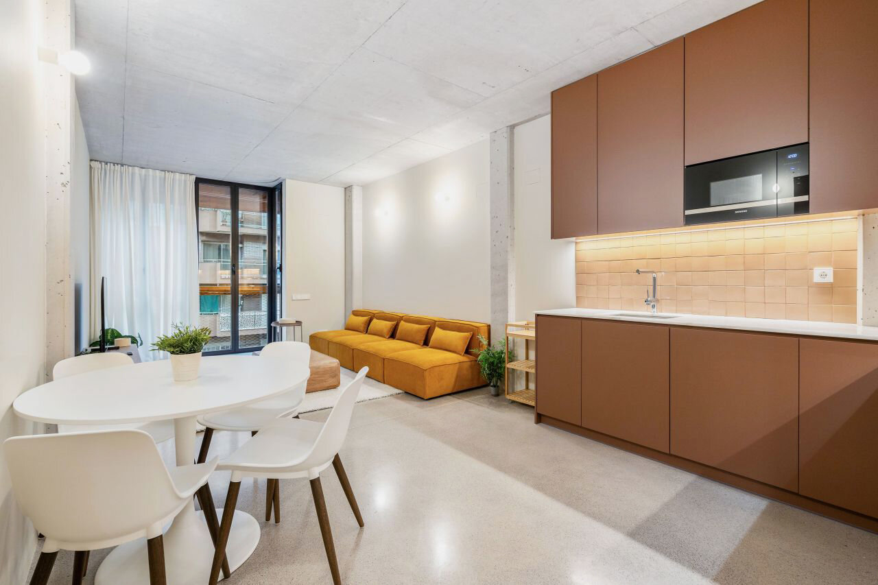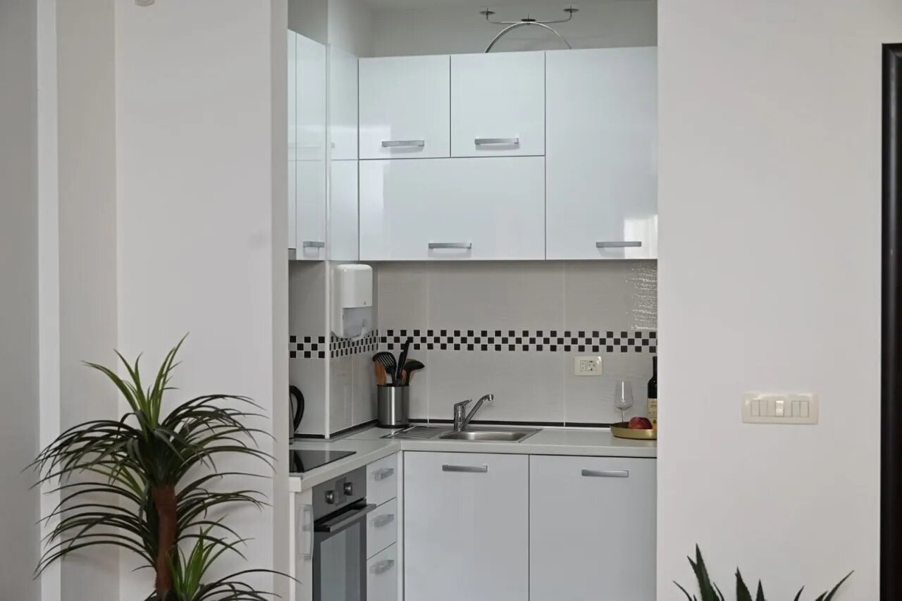Разогреваемся с помощью стильных и просторных апартаментов. Яркие, но не кричащие цветовые акценты, П-образная большая кухня, симпатичная обеденная и гостиная зоны, несколько спален и открытая лоджия. Сколько же стоит и в какой стране находится это великолепие на первой линии от моря?