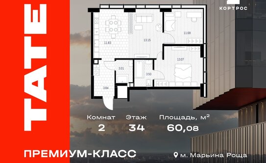 - 37,01 млн ₽Москва, ЖК ТэйтМарьина Роща 13 мин.