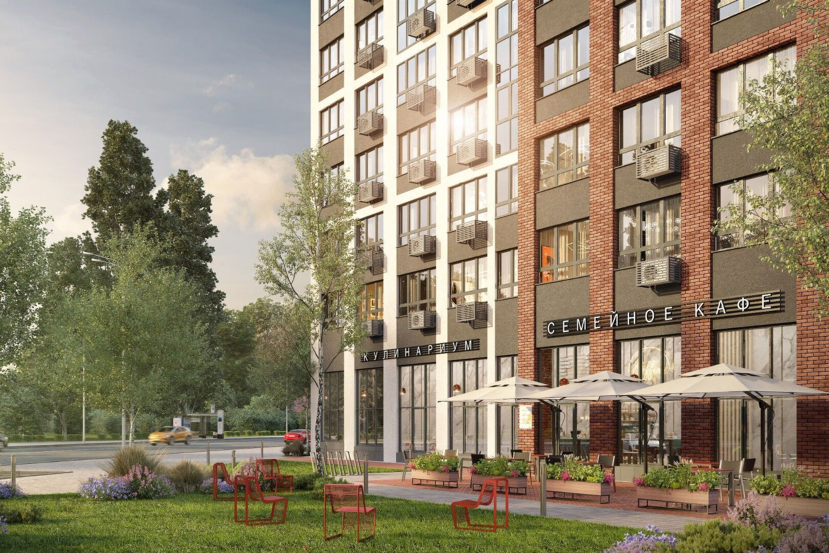 В ЖК ÁLIA – больше 100 вариантов планировок. Можно купить студию или 1-, 2- и 4-комнатную квартиру разных форматов: с высокими потолками, просторными лоджиями, функциональным зонированием, мастер-спальнями с гардеробными, с местами для каминов в гостиных и окнами в ванных комнатах. Фишка всех квартир — обилие света: высота окон в комплексе — больше двух метров! В домах предусмотрены дизайнерские лобби, а на территории обустроят детские и спортивные площадки, беговые и велосипедные дорожки. Застройщик обещает открыть два детских сада и две школы.