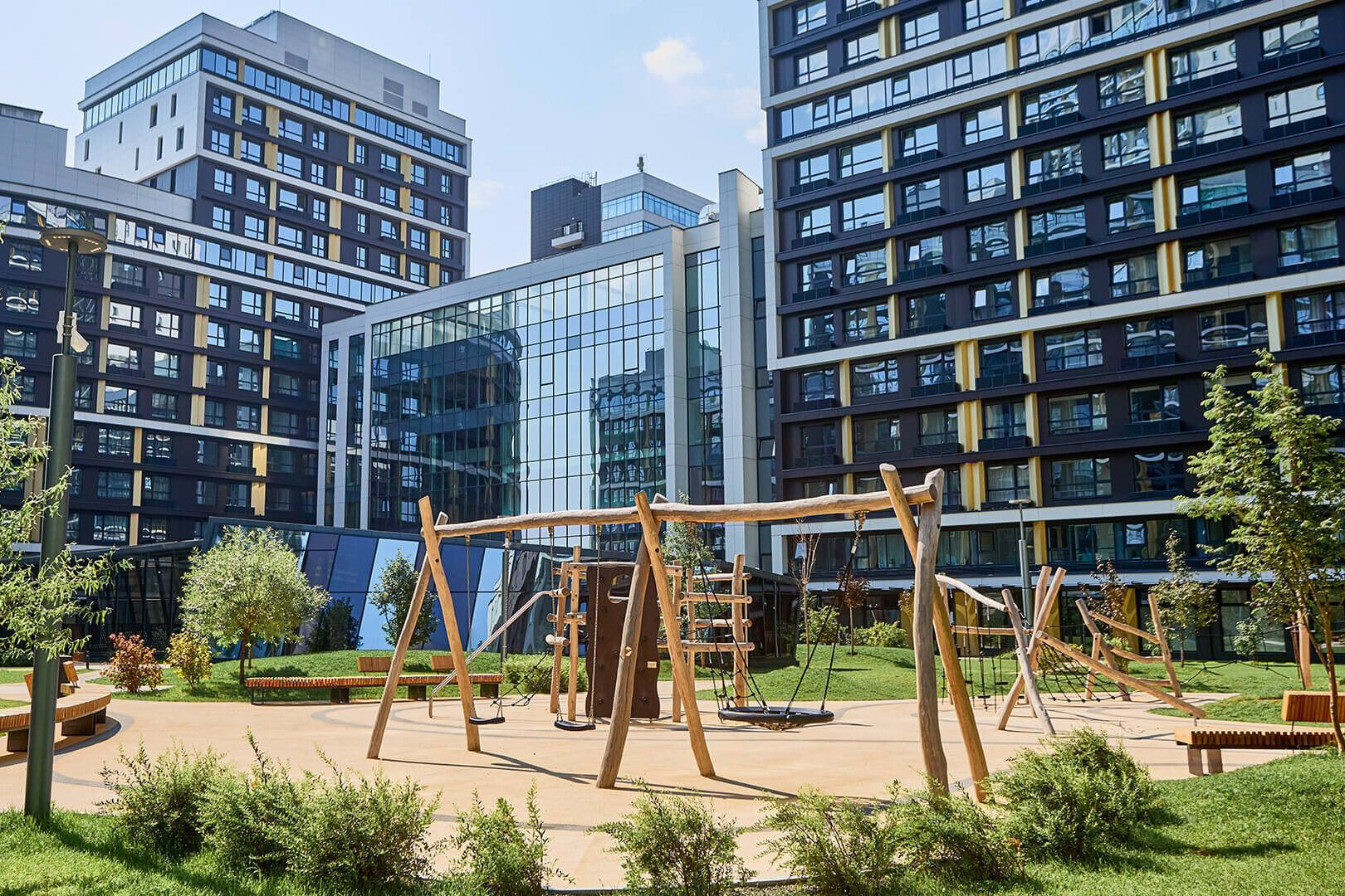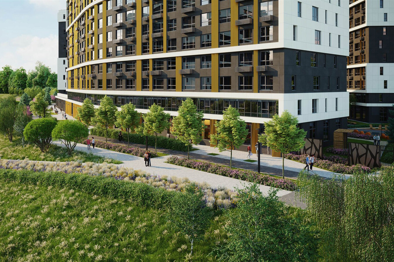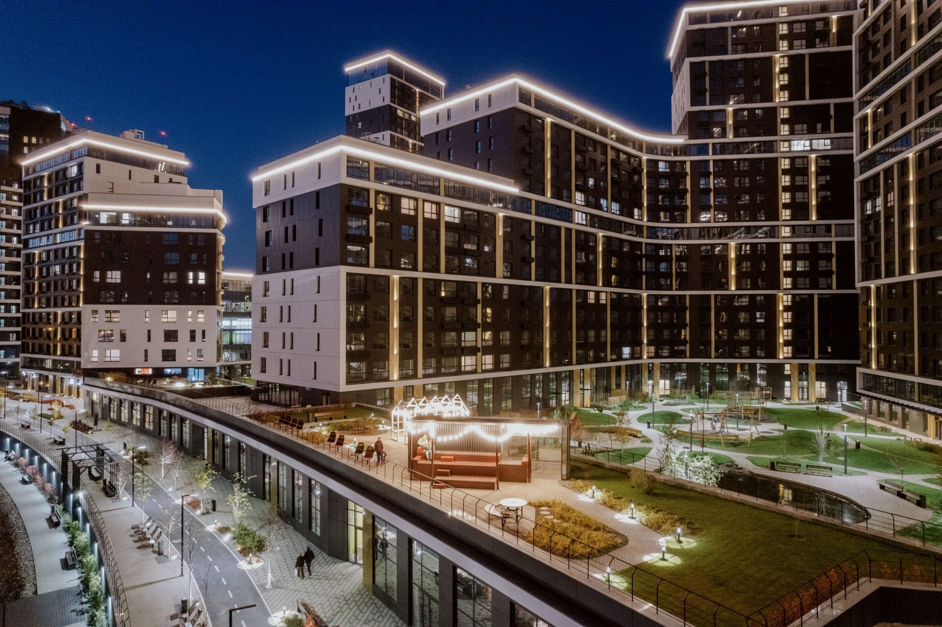 Завершает подборку ЖК «Архитектон» — комплекс из четырёх зданий в современном стиле высотой от 11 до 17 этажей. Двор ЖК закрыт от посторонних и машин, здесь высажены растения и организованы детские и спортивные площадки, а также пространства для отдыха. В каждом холле работает консьерж, который следит за порядком и помогает жильцам в решении бытовых вопросов. Там также предусмотрены мягкие зоны для отдыха и встреч, колясочные и лапомойки.