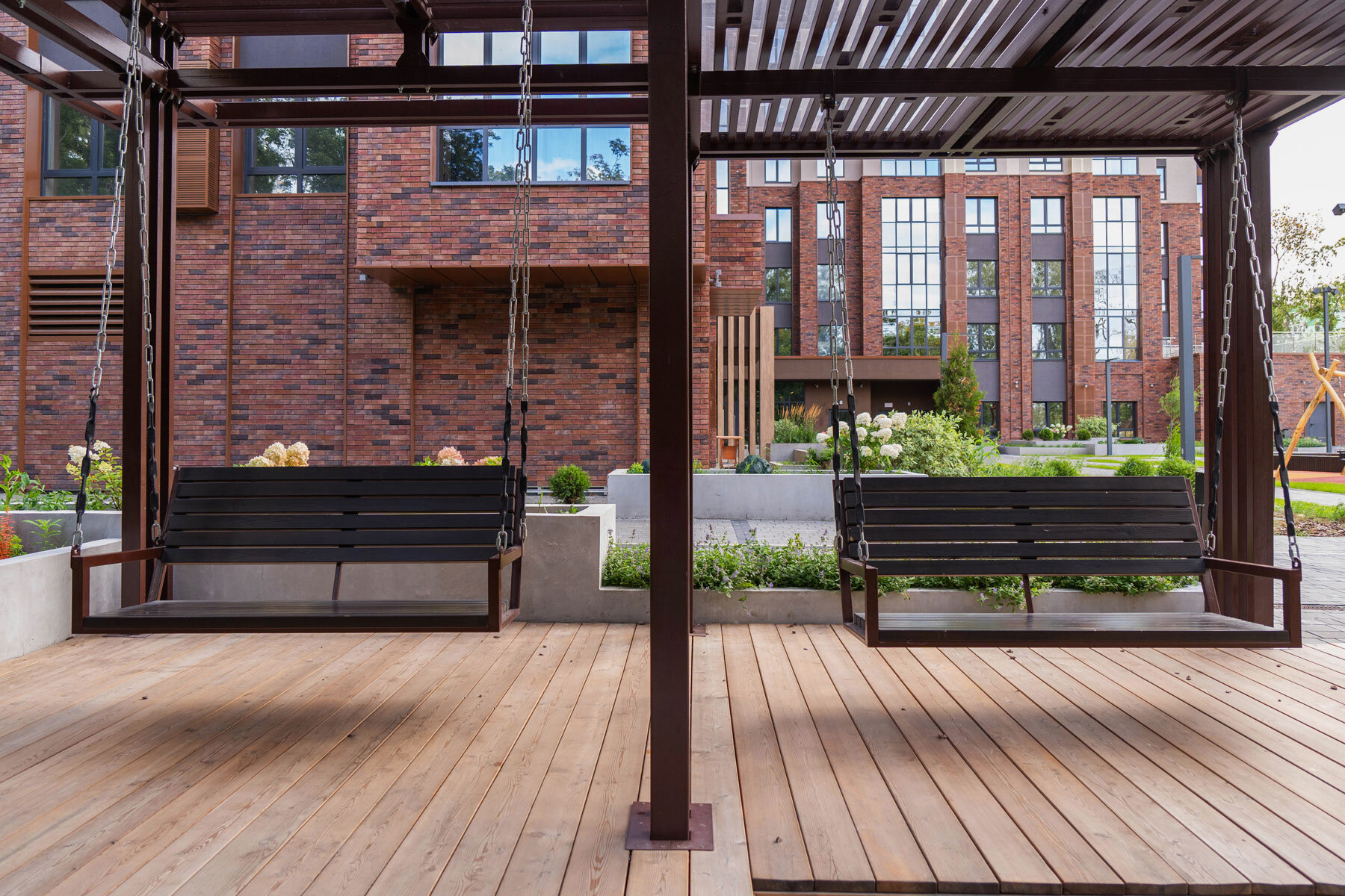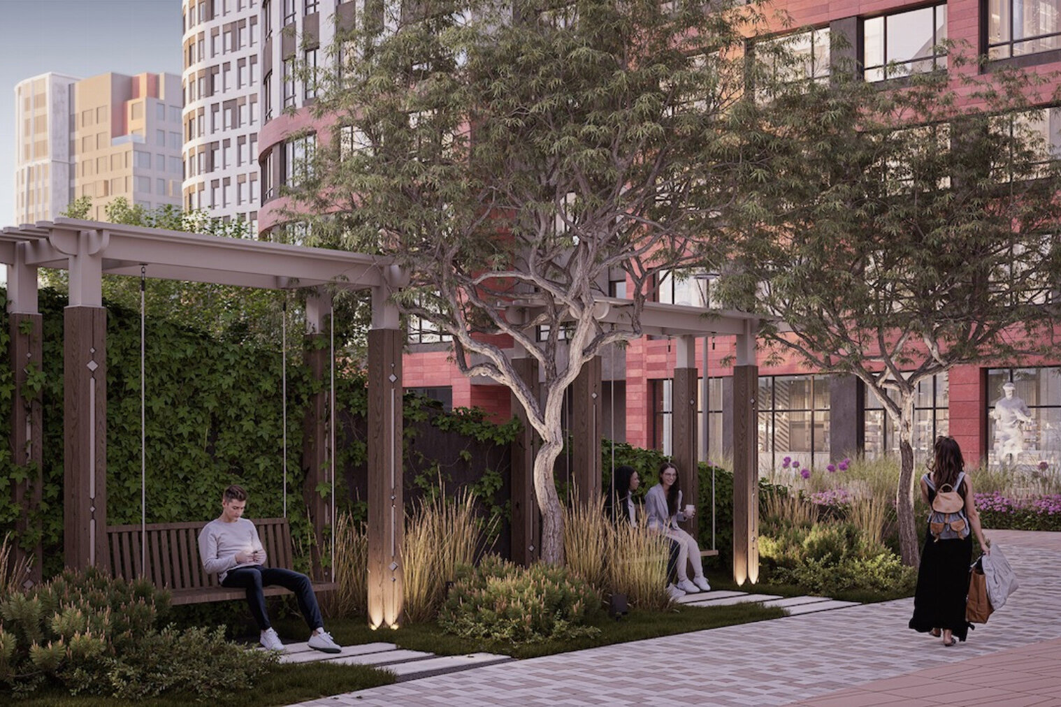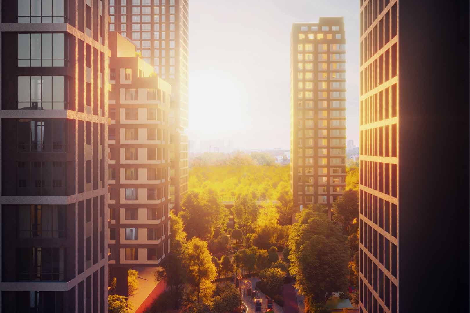 Завершает подборку ЖК «Архитектон» — комплекс из четырёх зданий в современном стиле высотой от 11 до 17 этажей. Двор ЖК закрыт от посторонних и машин, здесь высажены растения и организованы детские и спортивные площадки, а также пространства для отдыха. В каждом холле работает консьерж, который следит за порядком и помогает жильцам в решении бытовых вопросов. Там также предусмотрены мягкие зоны для отдыха и встреч, колясочные и лапомойки.