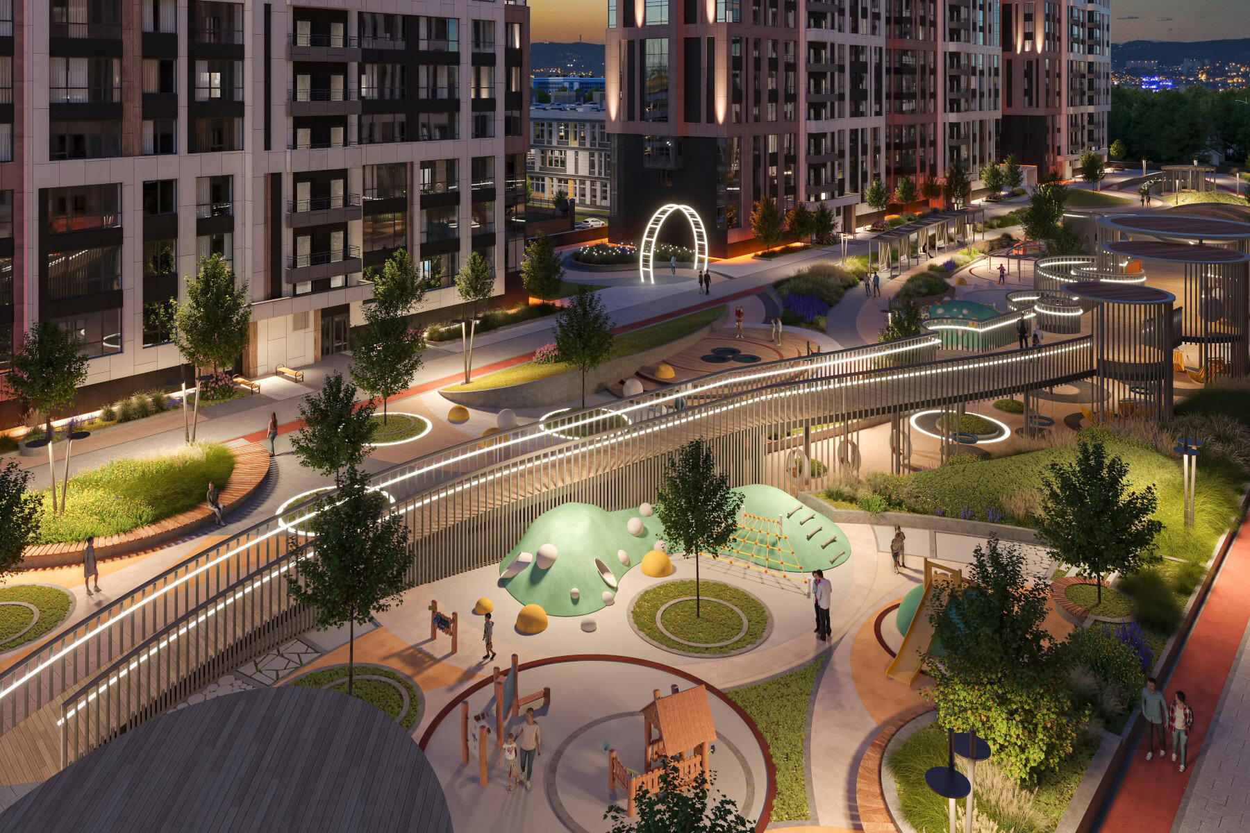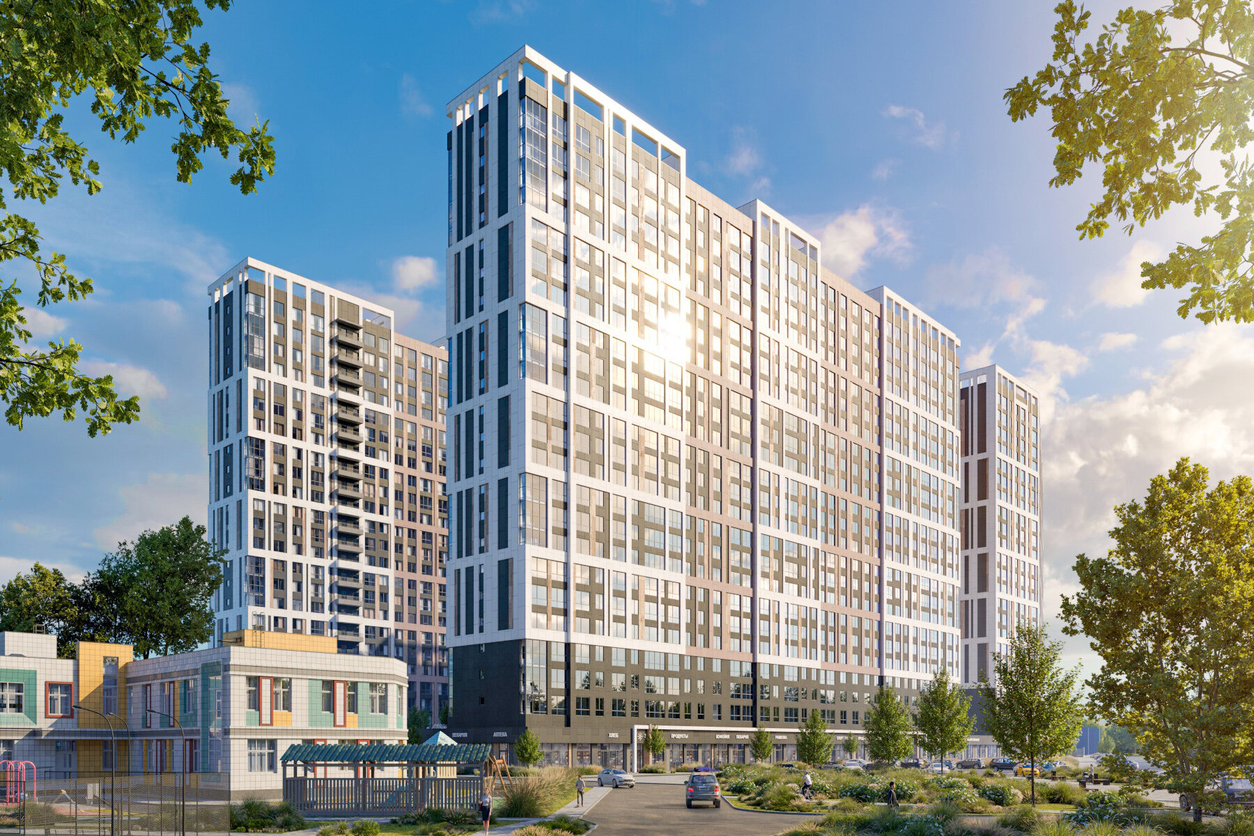 - Для меня бизнес не бизнес без прокачанной инфраструктуры внутри комплекса. Выбирали именно по такому критерию, поэтому этот жк склонил на свою сторону топ-гимназией на территории и детсадом, это было важно. Плюс благоустройство в виде детских площадок с батутами, веревочной зоной, пешеходным мостом, качелями и всем прочим.