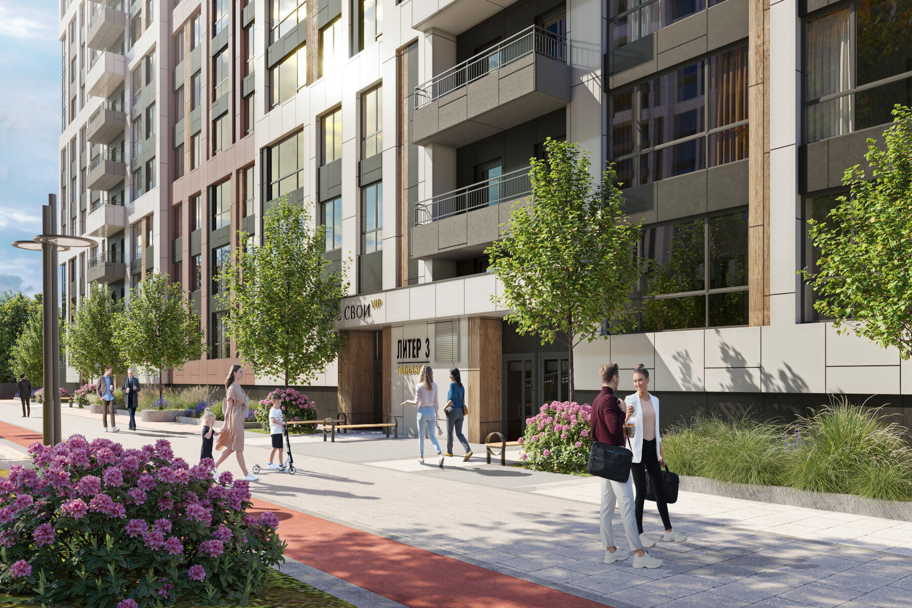 «Все свои VIP» — комплекс из семи корпусов высотой 16-24 этажа, расположенный в центре Краснодара. В стилобатной части запланирован разбитый на тематические зоны коммерческий кластер с магазинами, кофейнями, пекарнями, пунктами выдачи заказов и бытовыми сервисами, детскими центрами и медучреждениями. Зелёный двор разместится на стилобате: там сделают 126-метровый пешеходный мост, амфитеатр для мероприятий, фотозону с иллюминацией, игровые площадки для детей, воркаут-зоны, беседки и дорожки. Для автомобилей жильцов предусмотрены места под стилобатом или на многоуровневой парковке. Кроме того, в ЖК уже открыты гимназия с инженерно-математическим уклоном и детский сад.