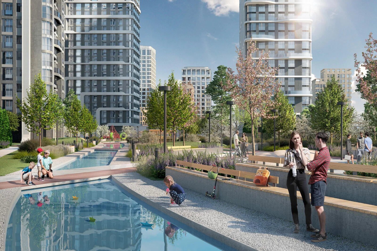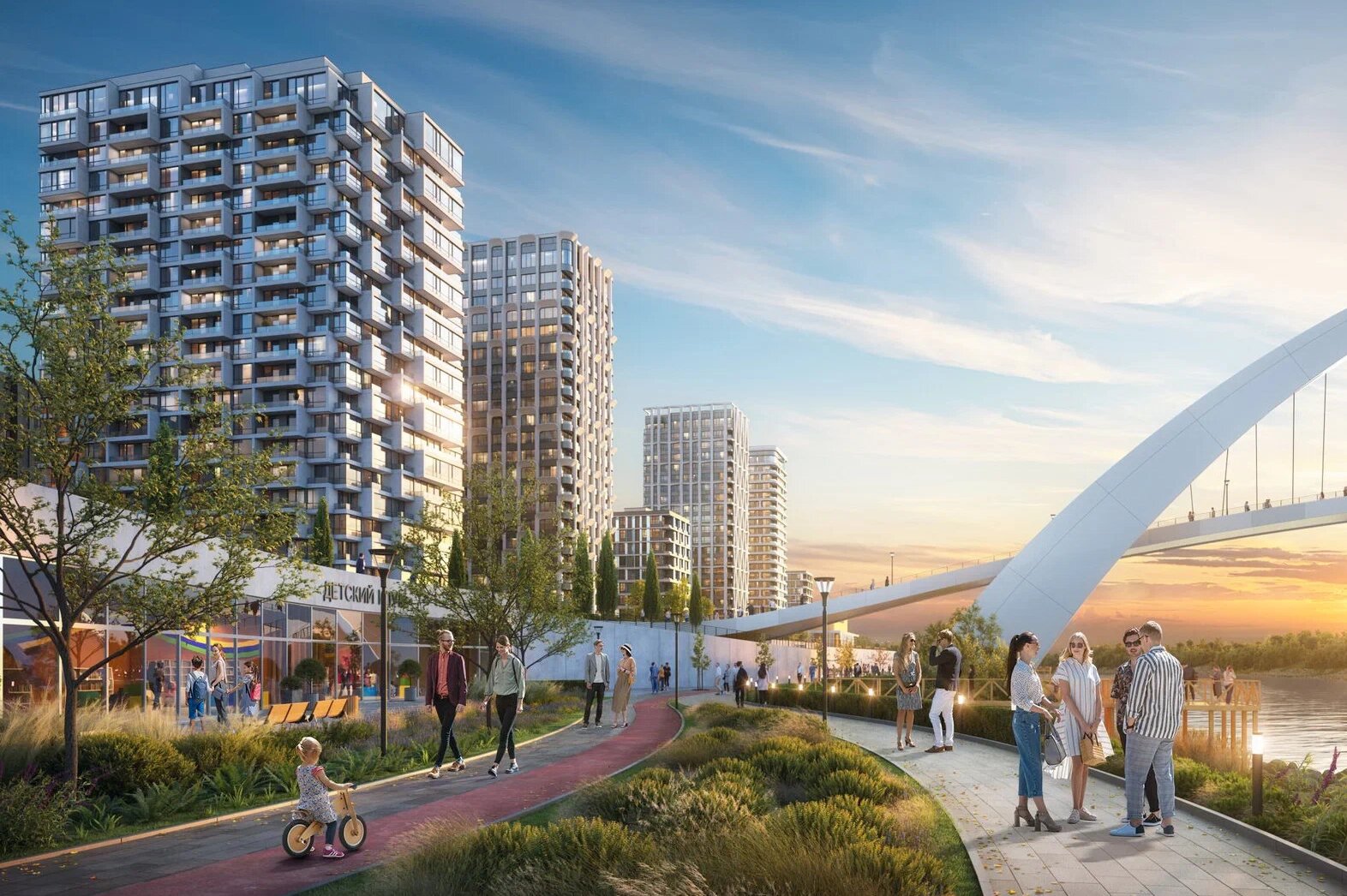 В комплексе появятся собственные зелёные пространства, набережные и инфраструктура: детские сады, школы, игровые и спортивные площадки, зоны для спокойного отдыха. Автомобиль можно будет оставить в подземном паркинге, для велосипедов также предусмотрены стоянки. На всей территории будет работать скоростной интернет.