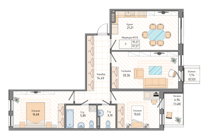 В ЖК «Лайнеръ» продаются студии и 1-, 2- и 3-комнатные квартиры площадью от 23,3 до 96,8 кв. м. В комплексе много квартир, из окон которых открываются виды на Неву и Большой Обуховский мост. В линейке есть предложения с европланировками. Жильё сдаётся с готовой отделкой в светлом и тёмном вариантах на выбор.