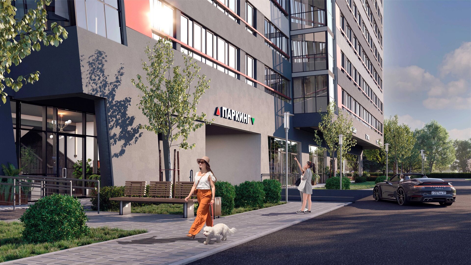 Двор ЖК будет закрыт для транспорта, там обустроят зоны для игр и отдыха. В комплексе предусмотрен подземный паркинг на 298 автомобилей, куда можно будет спуститься со своего этажа на лифте. На первых этажах спроектированы коммерческие помещения под магазины и сервисы.