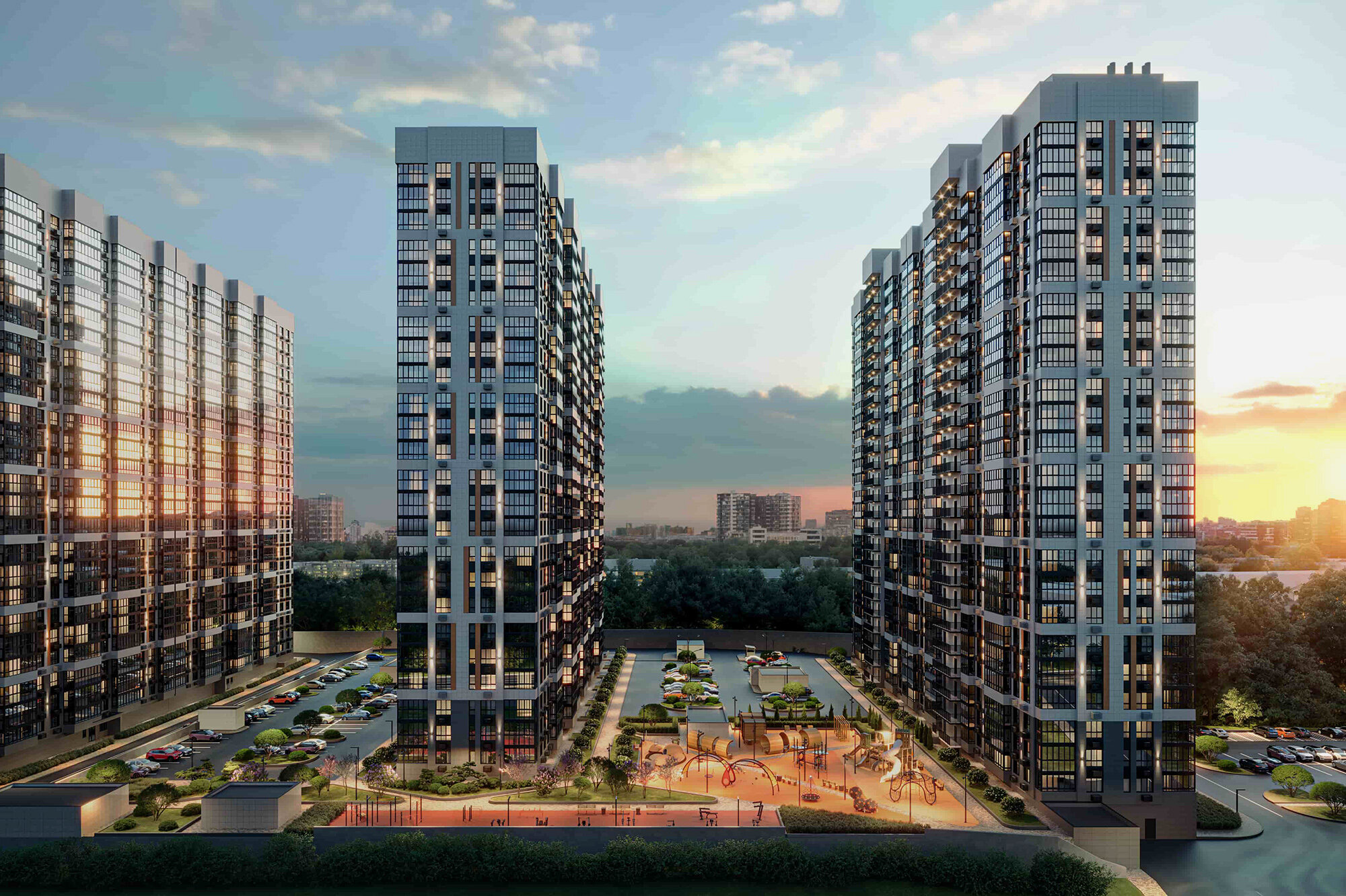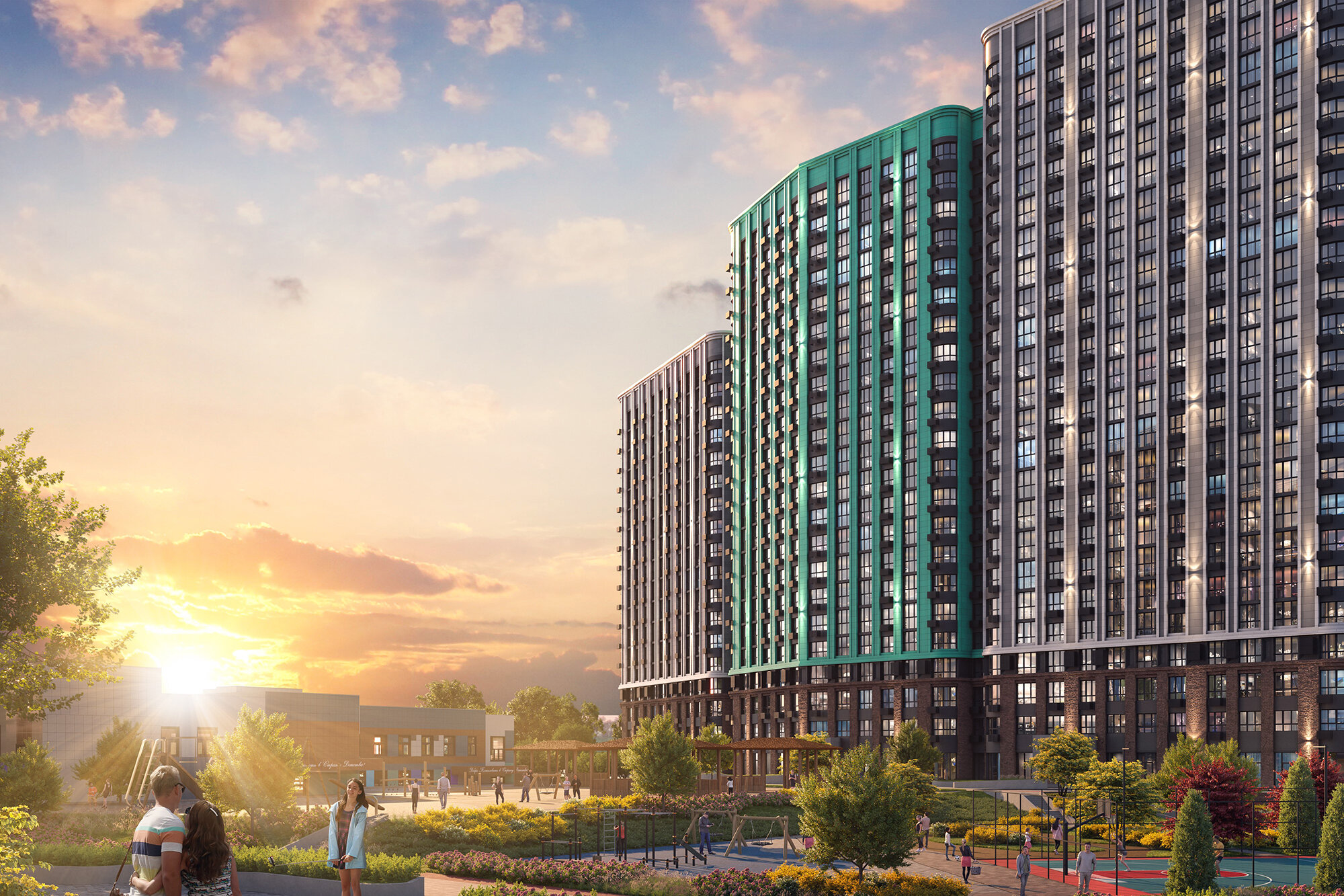 Жилая часть ЖК состоит из 13 корпусов высотой 25 этажей. Здесь представлены студии и квартиры с одной, двумя и тремя комнатами. Во всех квартирах предусмотрены балконы. Есть варианты с кухнями-гостиными или кухнями-столовыми. Жильё сдаётся с отделкой white box или с готовым ремонтом на выбор.