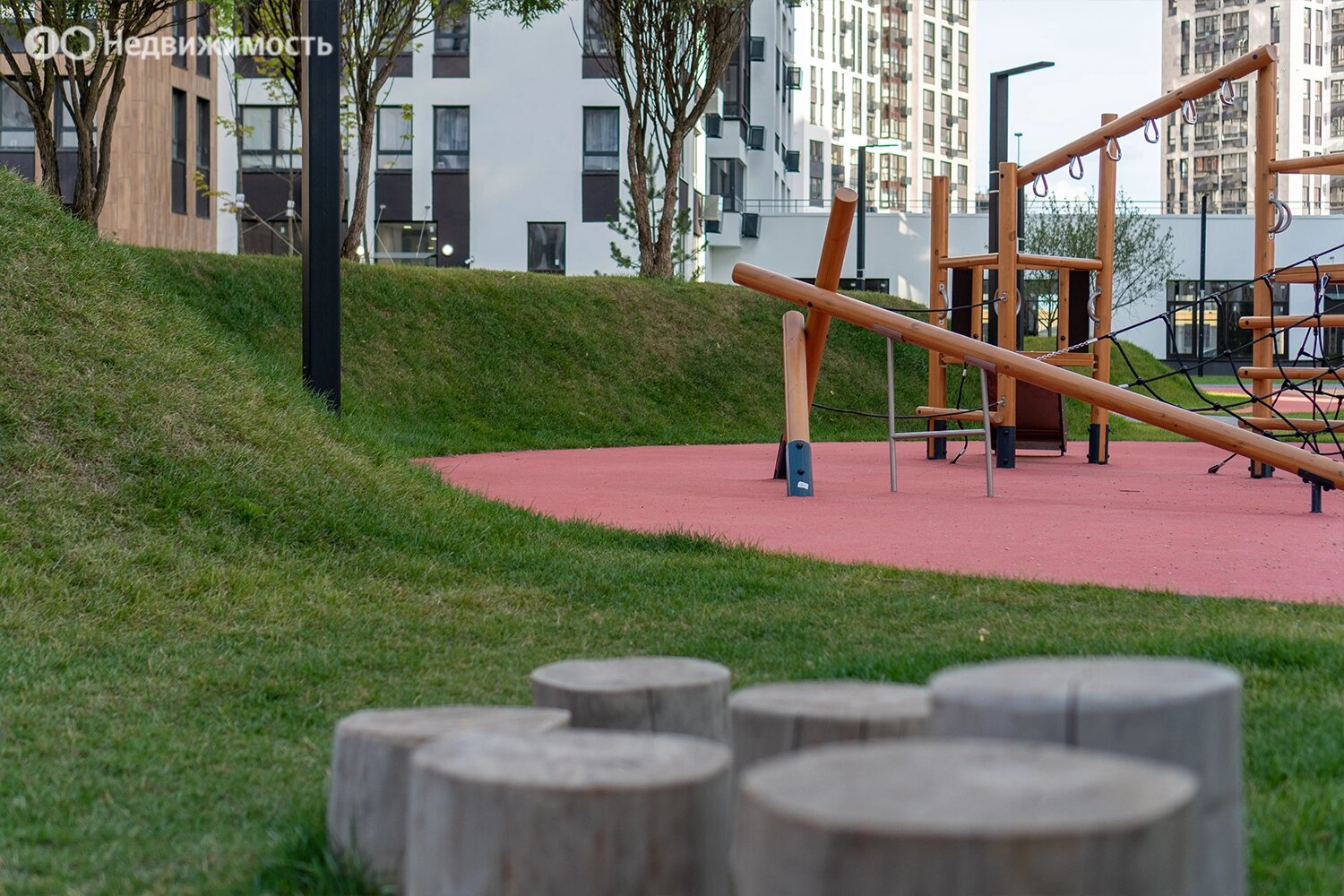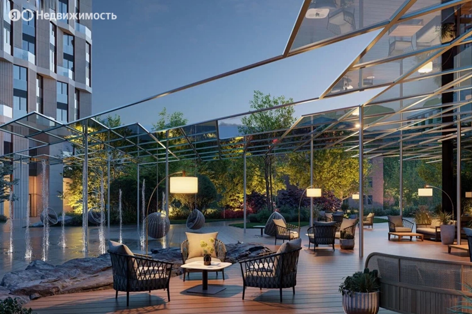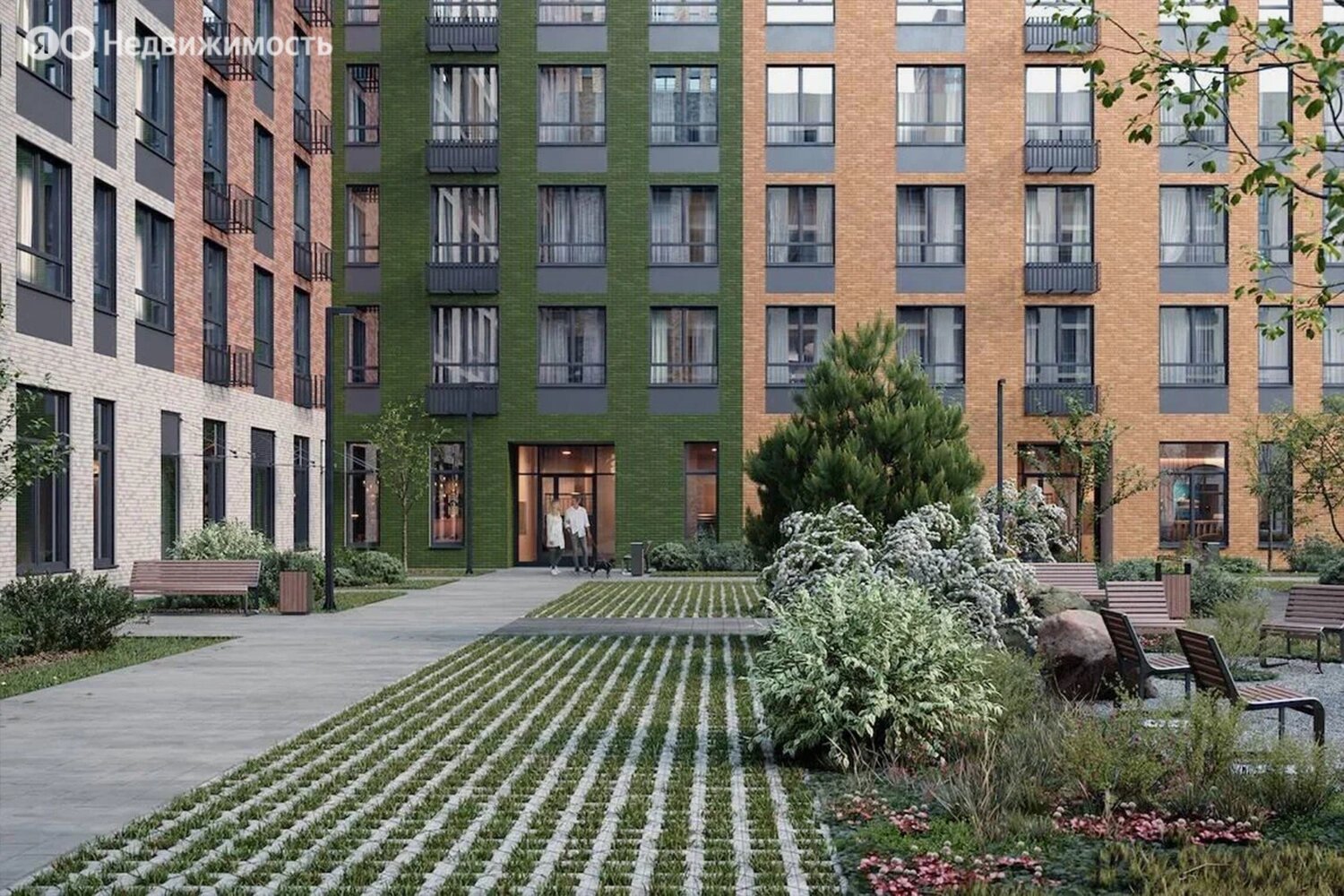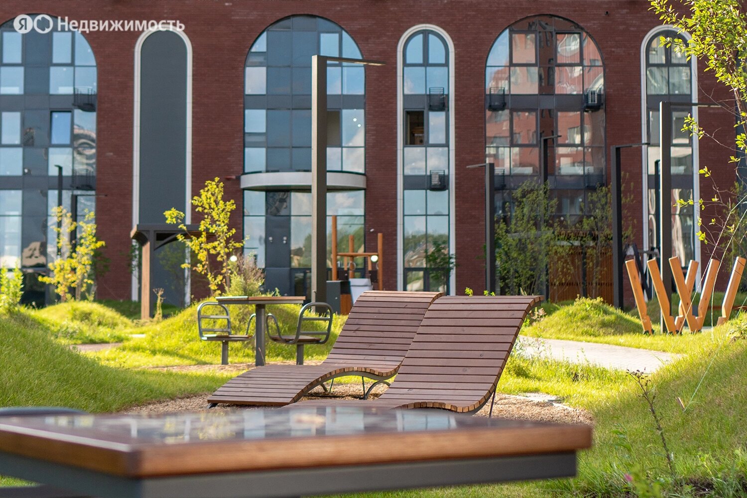 Территория комплекса будет закрыта от посторонних и разделена на функциональные зоны. Застройщик планирует создать двор-лес с хвойными и лиственными деревьями, прудом с «горбатым» мостиком, скамейками и беседками, детскими и спортивными площадками.