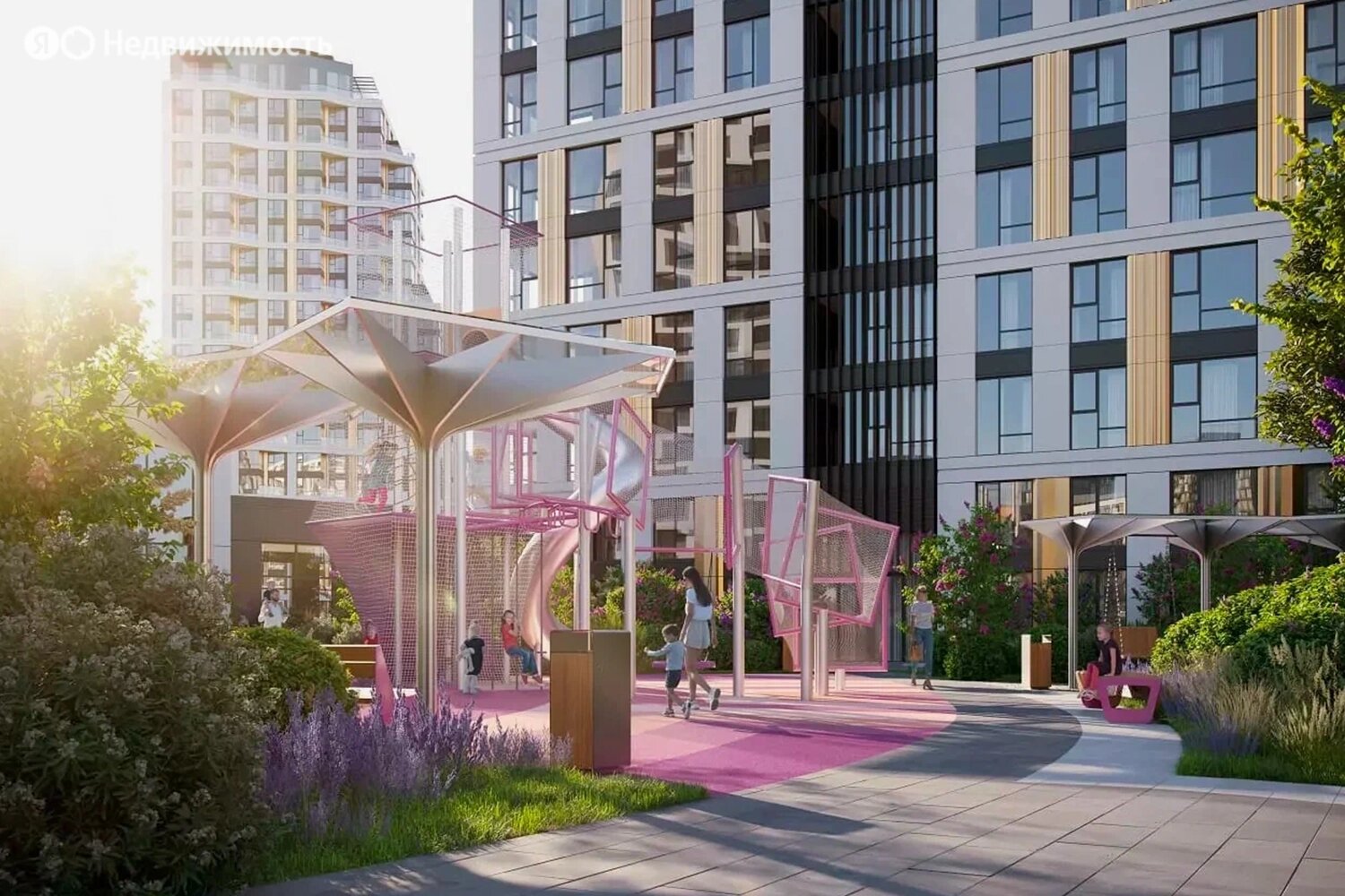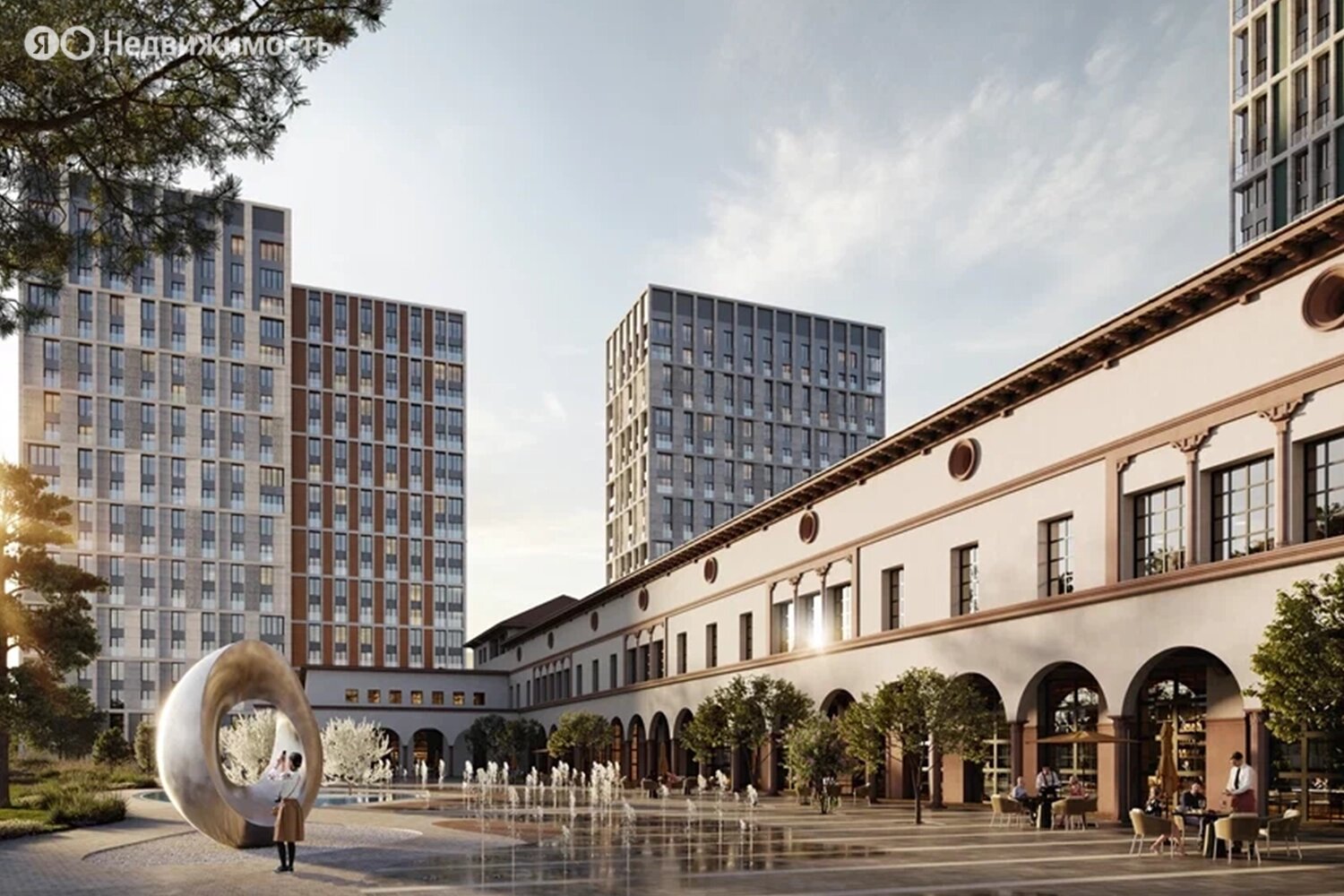 Собственная инфраструктура ЖК будет включать школу с детским садом, подземный паркинг с автомойкой, кладовые. Двор будет доступен только жителям. Для них оборудуют детские и спортивные площадки, разобьют парк с аркадами, галереями и другими декоративными элементами.