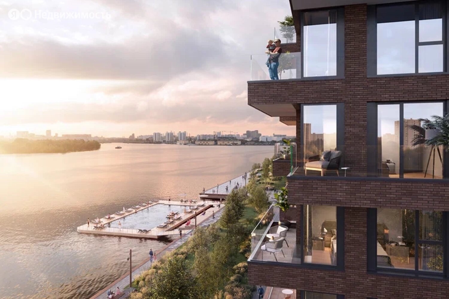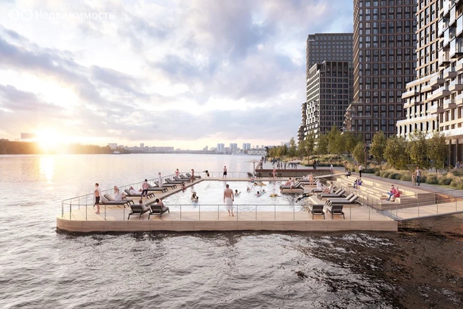 На территории жилого комплекса будут построены три детских сада и школа. На первых этажах домов откроются магазины, фитнес-центр, ресторан и кафе. Во дворах домов запланированы лаунж-пространства, места для работы на свежем воздухе, уличный кинотеатр, событийная площадь, различные спортивные зоны, а также видовой мост протяжённостью 155 м и вертикальная детская площадка вдоль стены стилобата — со скалодромом, горками, качелями, системами для лазания.