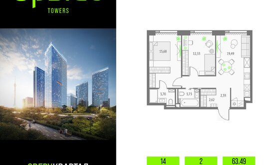 - 32,59 млн ₽Москва, микрорайон Очаково, ЖК Среда на Лобачевского, к5.4Очаково 17 мин.