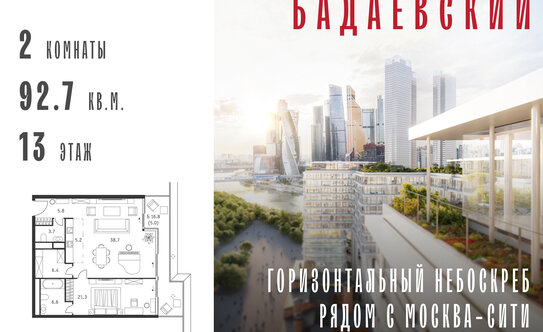 - 128,55 млн ₽Москва, жилой комплекс БадаевскийКиевская 19 мин.