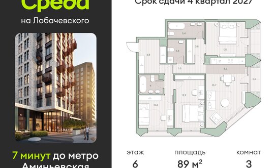- 41,83 млн ₽Москва, микрорайон Очаково, ЖК Среда на Лобачевского, к5.7Очаково 17 мин.