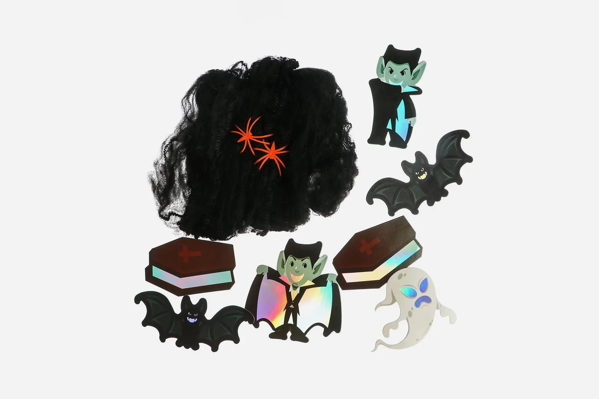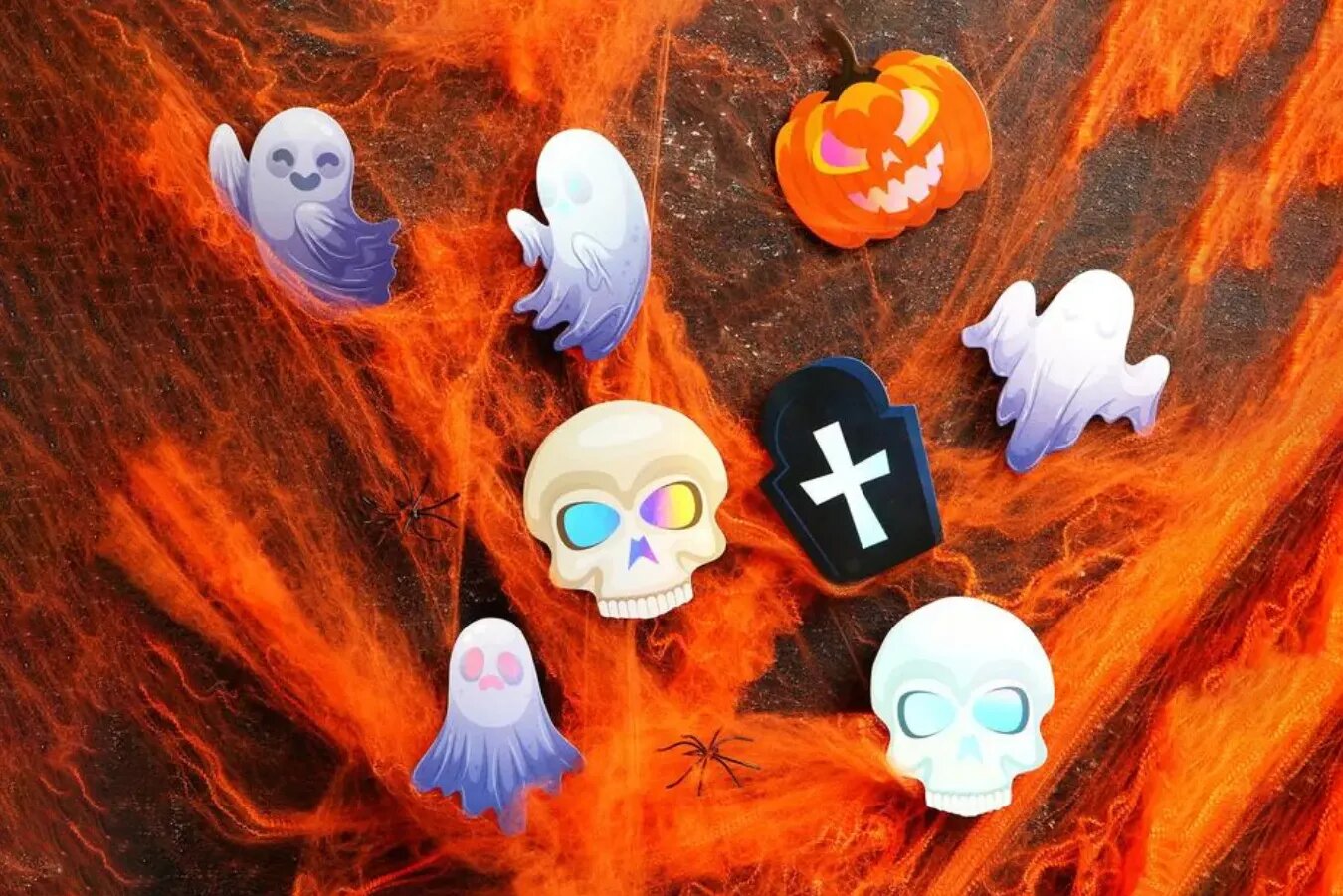 Хочется тёмного торжества, но нет времени и сил заморачиваться? Возьмите хэллоуинский набор, в котором уже есть всё основное для празднования: жуткие наклейки, призрачные значки и пугающий декор. Бюджетный и простой вариант, идеально подходящий для скорого оформления дома к празднику.