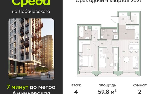 - 30,38 млн ₽Москва, микрорайон Очаково, ЖК Среда на Лобачевского, к5.7Очаково 16 мин.