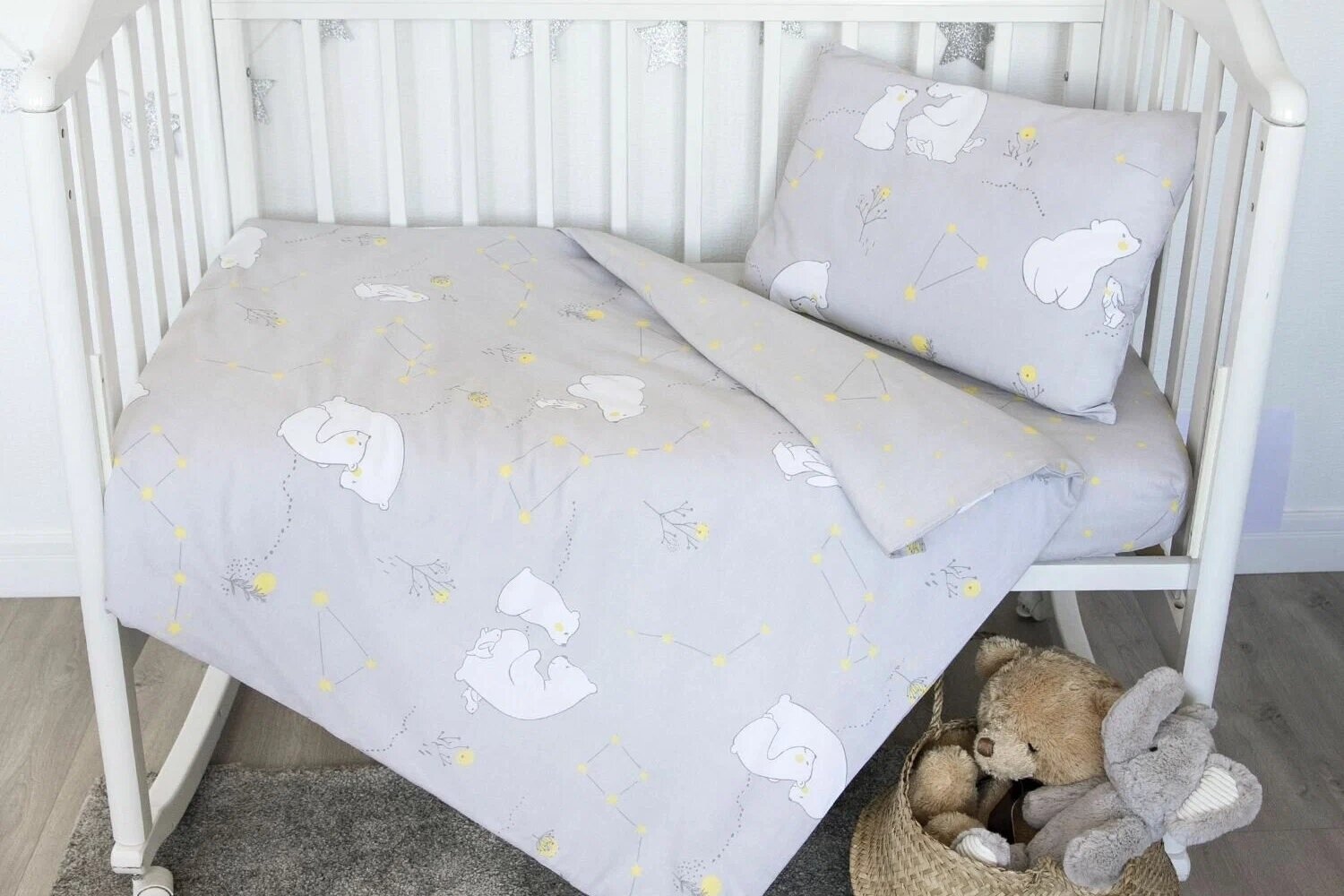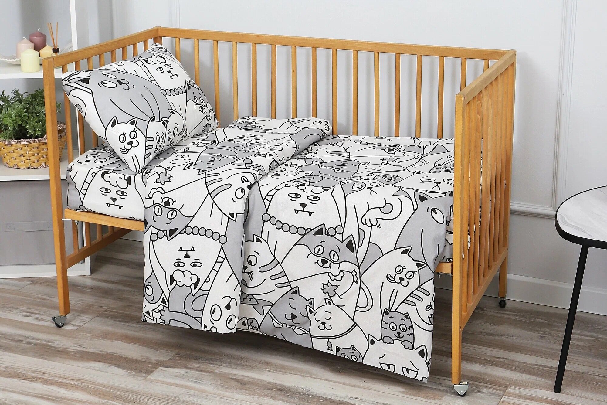 Для удобства рекомендуется иметь 2–3 комплекта постельного белья для детской кроватки, поскольку его придётся достаточно часто менять.