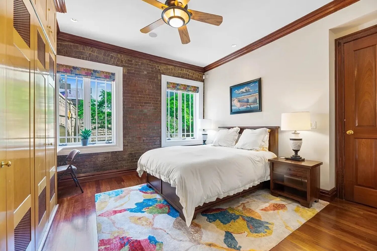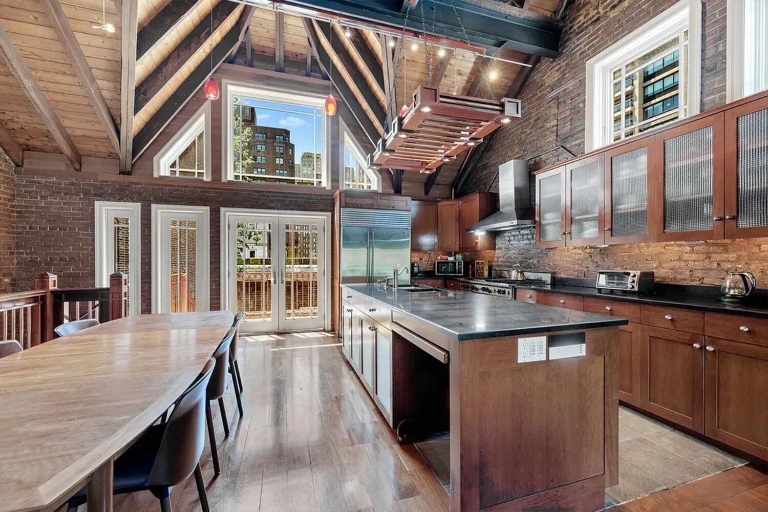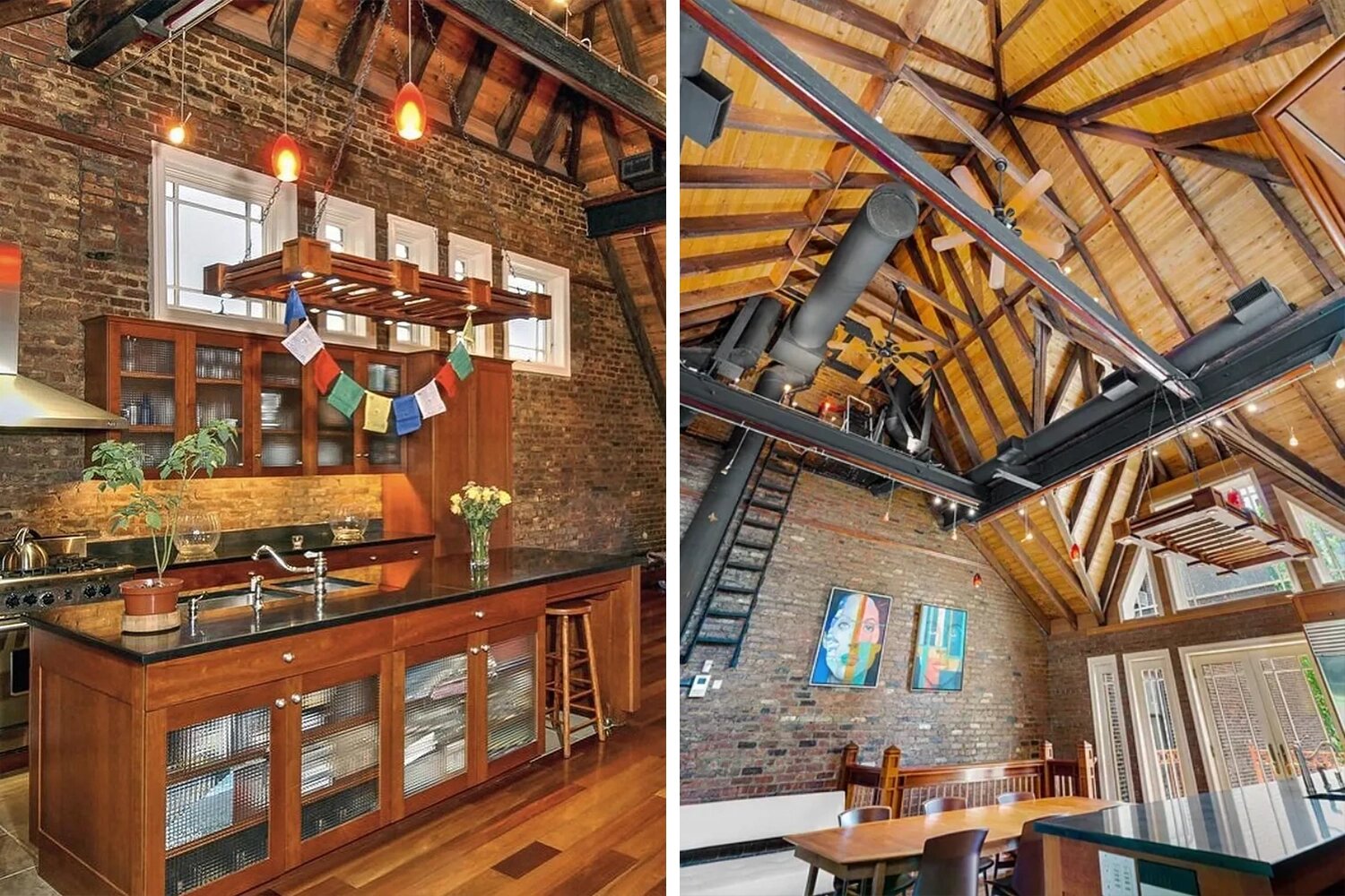 Общая площадь особняка превышает 600 кв. метров, в нём пять спален и 3,5 ванные комнаты, высота потолков достигает 8,2 метра. Дровяная печь, открытая старинная кирпичная кладка, множество деревянных элементов — всё это больше напоминает деревенское жильё, чем дом в Нью-Йорке.