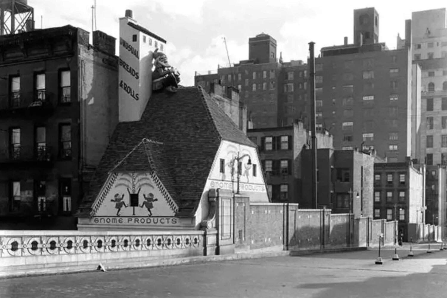 Узкое кирпичное трёхэтажное здание заметно отличается от соседней застройки Мидтаун-Ист. Дом с фасадом в сказочном стиле был построен в 1930 году для пекарни, которую назвали Home of the Gnomes. Владельцы привлекали покупателей фигурками гномов около входа и на крыше. После закрытия бизнеса здесь располагались дезинсекторы, выставочный зал и несколько творческих мастерских. В 2000-х жилой потенциал дома вновь привлёк к себе внимание — теперь его можно арендовать на долгий срок или купить.