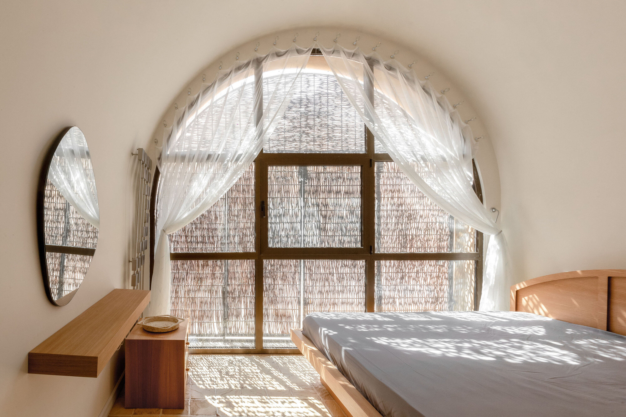 Арочная форма крыши была выбрана неслучайно: её двухслойная структура не только соответствует культурным традициям, но и поглощает больше солнечных лучей, спасая дом и его жителей от перегрева и сохраняя тепло для прохладных ночей.
