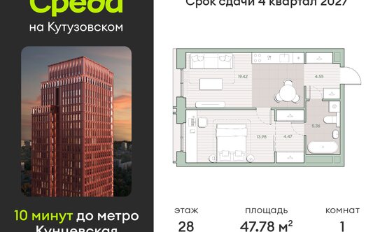 - 27,8 млн ₽Москва, ЗАО, район Кунцево, 48-й квартал, ЖК Среда на Кутузовском, к4.2Кунцевская 12 мин.