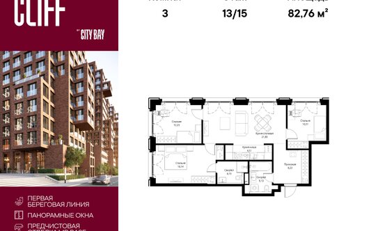 - 37,56 млн ₽Москва, СЗАО, район Покровское-Стрешнево, жилой комплекс Сити Бэй, квартал Клифф 5, 2Трикотажная 8 мин.