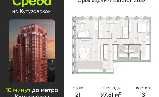 - 39,36 млн ₽Москва, ЗАО, район Кунцево, 48-й квартал, ЖК Среда на КутузовскомКунцевская 12 мин.