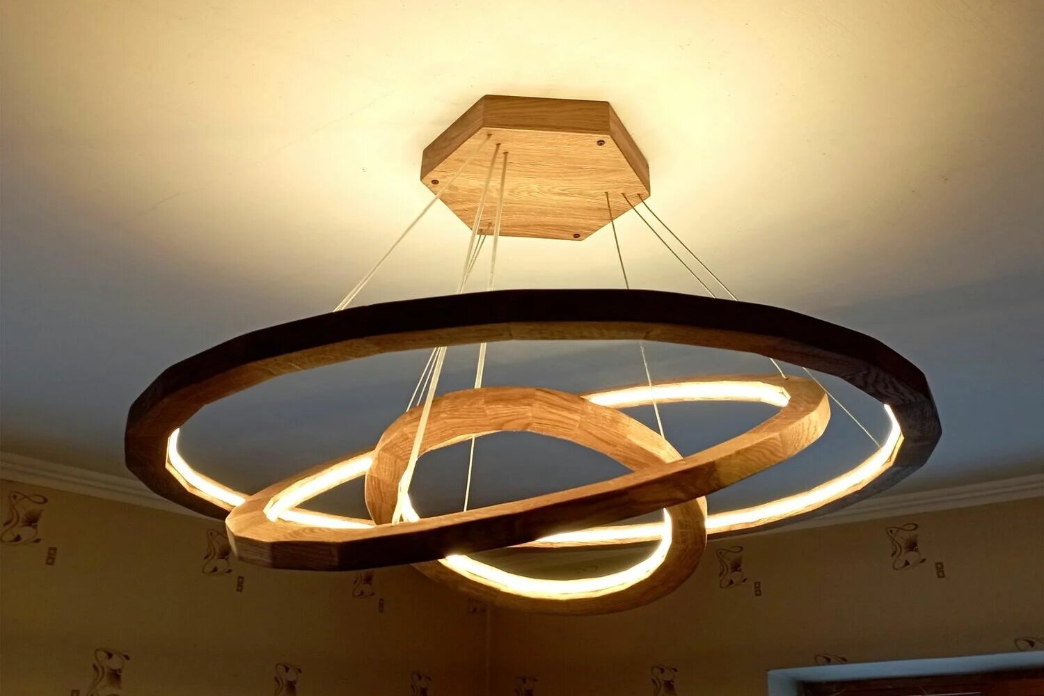 Одна из тенденций освещения сегодня — экодизайн. Он строится на использовании натуральных материалов, и в первую очередь, дерева, поэтому взять деревянную светодиодную люстру — неплохая идея. Тем более что смотрятся такие модели оригинально и выразительно.