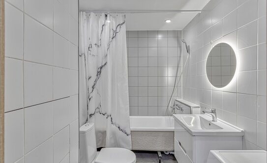 Покупателям доступны два вида отделки: white box и полностью готовый ремонт. В первом варианте все черновые работы уже выполнены: внутренние стены готовы для финишного покрытия, пол и потолок не требуют выравнивания. Строители заранее сделают разводку электрики и стяжку пола, установят розетки и выключатели. В санузлах полностью выполнена отделка, уложена керамическая плитка и установлена сантехника.