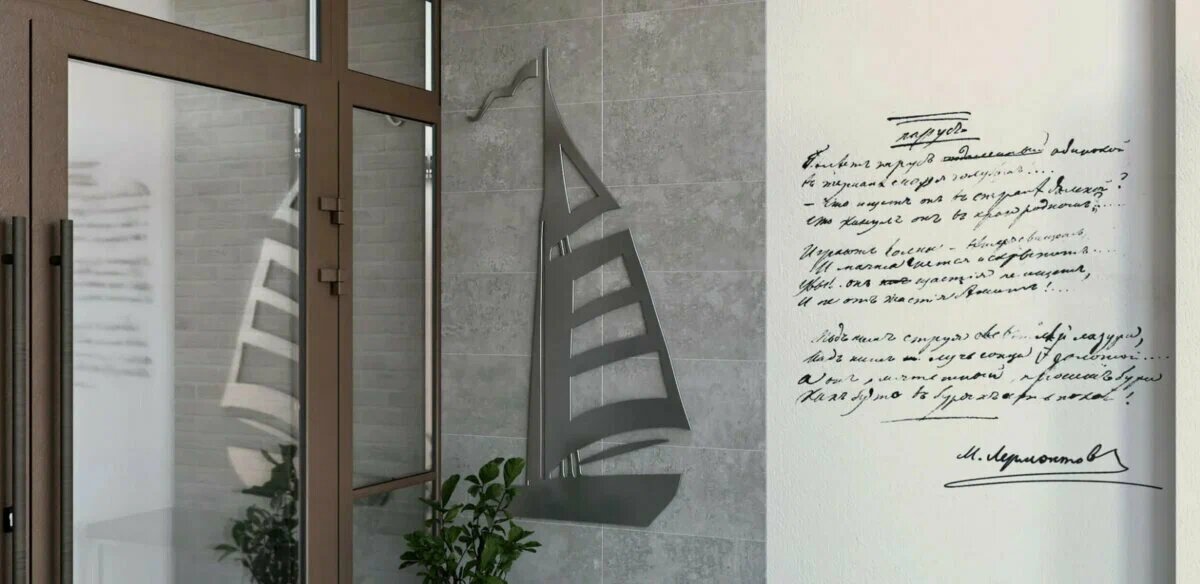 Вход в подъезд оформлен с использованием строк из стихотворения Лермонтова. Фотография: Яндекс.Недвижимость (Яндекс Карты)