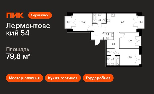 «Лермонтовский 54» | 8,5–24,1 | ПИК | 20–78,3 | I квартал 2025 — I квартал 2026 года | 5 минут пешком до метро «Балтийская» | Черновая, white box |