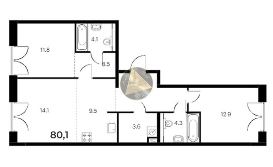 - 11 — для 3-комнатных квартир. Есть варианты с 3 санузлами, балконами или террасами, гардеробными и постирочными, ванными с окном.