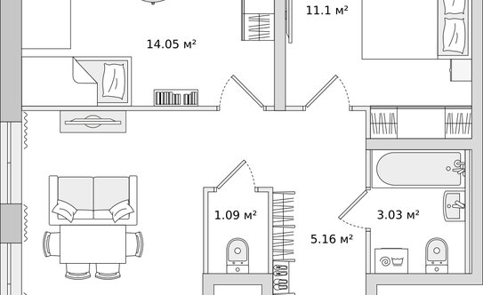 В ЖК «Новые горизонты» представлено 186 видов планировок. Самые популярные решения: