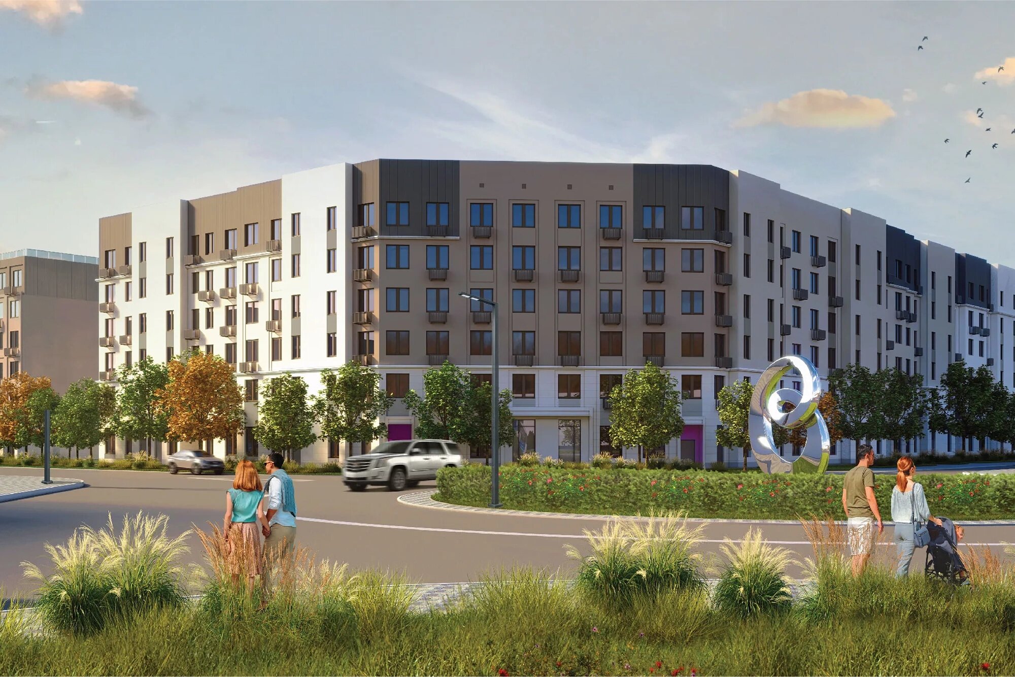 Во дворах оборудуют детские и воркаут-площадки, столы для настольного тенниса. Баскетбольные корты расположат на удалении от домов. Через территорию ЖК проложат два пешеходных бульвара, на первых этажах домов будут работать магазины и кафе. Для автомобилей построят многоуровневый паркинг.