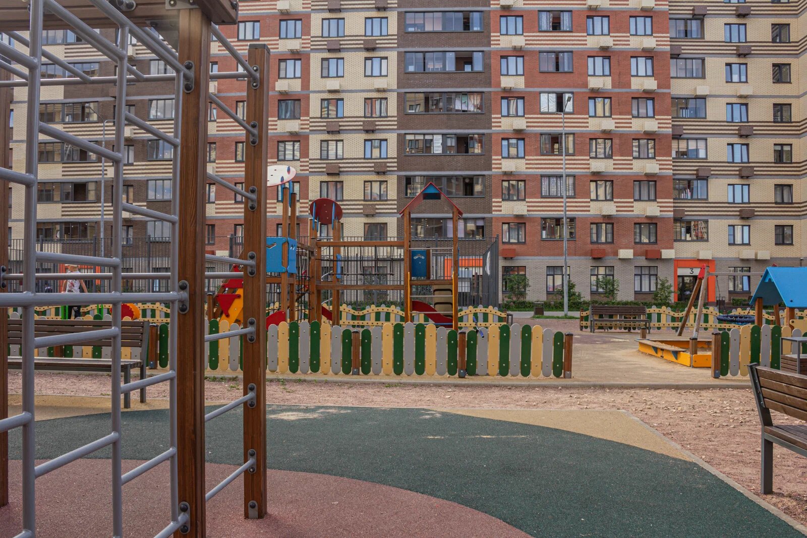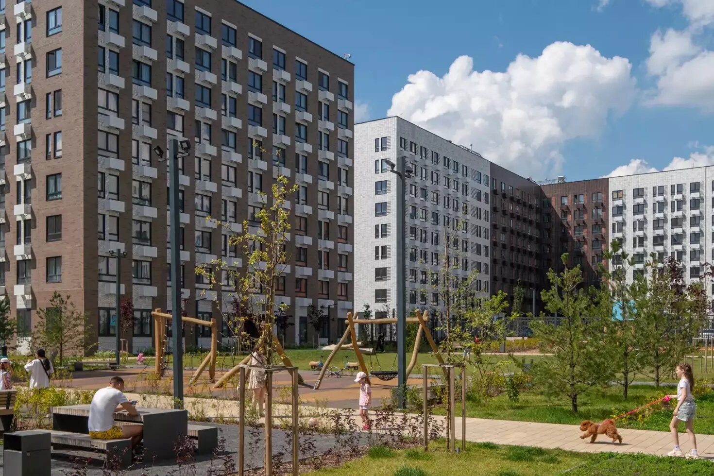 - Дворы здесь действительно уютные, достаточно зелени, неплохие детские площадки, территории для занятий спортом, достаточно солнца, не сплошная тень как бывает. И детский сад прямо в шаговой доступности, уже работает. Обещают даже поликлинику и станцию скорой помощи. Беда как много где парковка, вечером место не всегда найдёшь, приходится далеко оставлять машину, но мы не из ленивых (