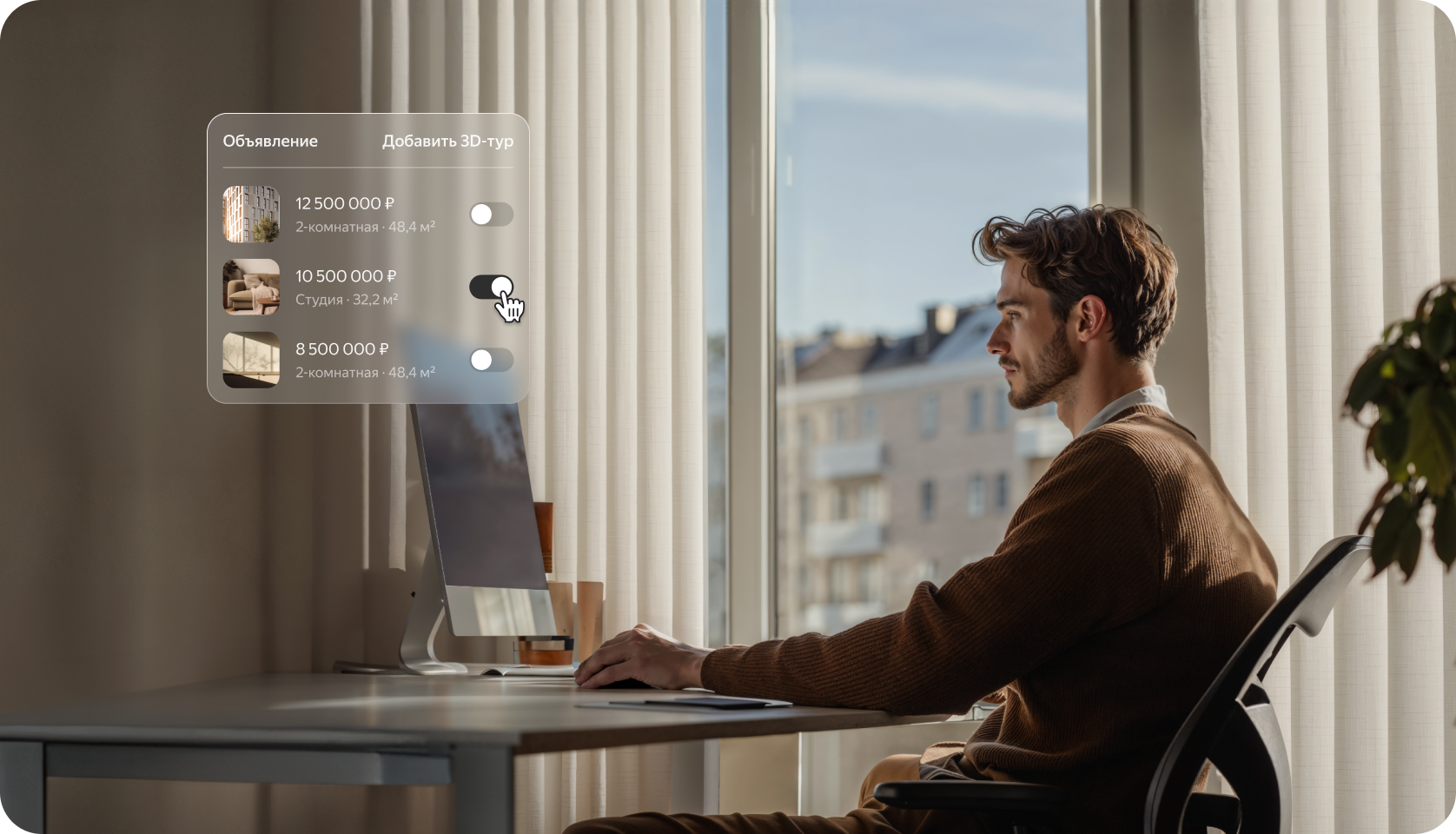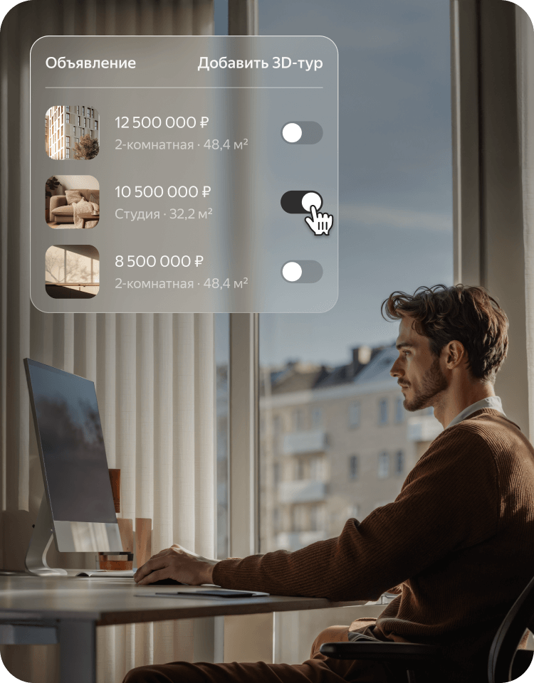 Чтобы выделяться на площадке, для партнеров Яндекс Недвижимости реализована технология съёмки 3D-туров для объектов.