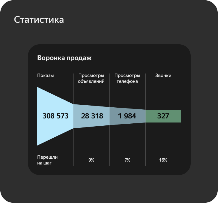 Вы сможете прослушать все полученные звонки и увидеть количество просмотров и звонков с разбивкой на установленные периоды.