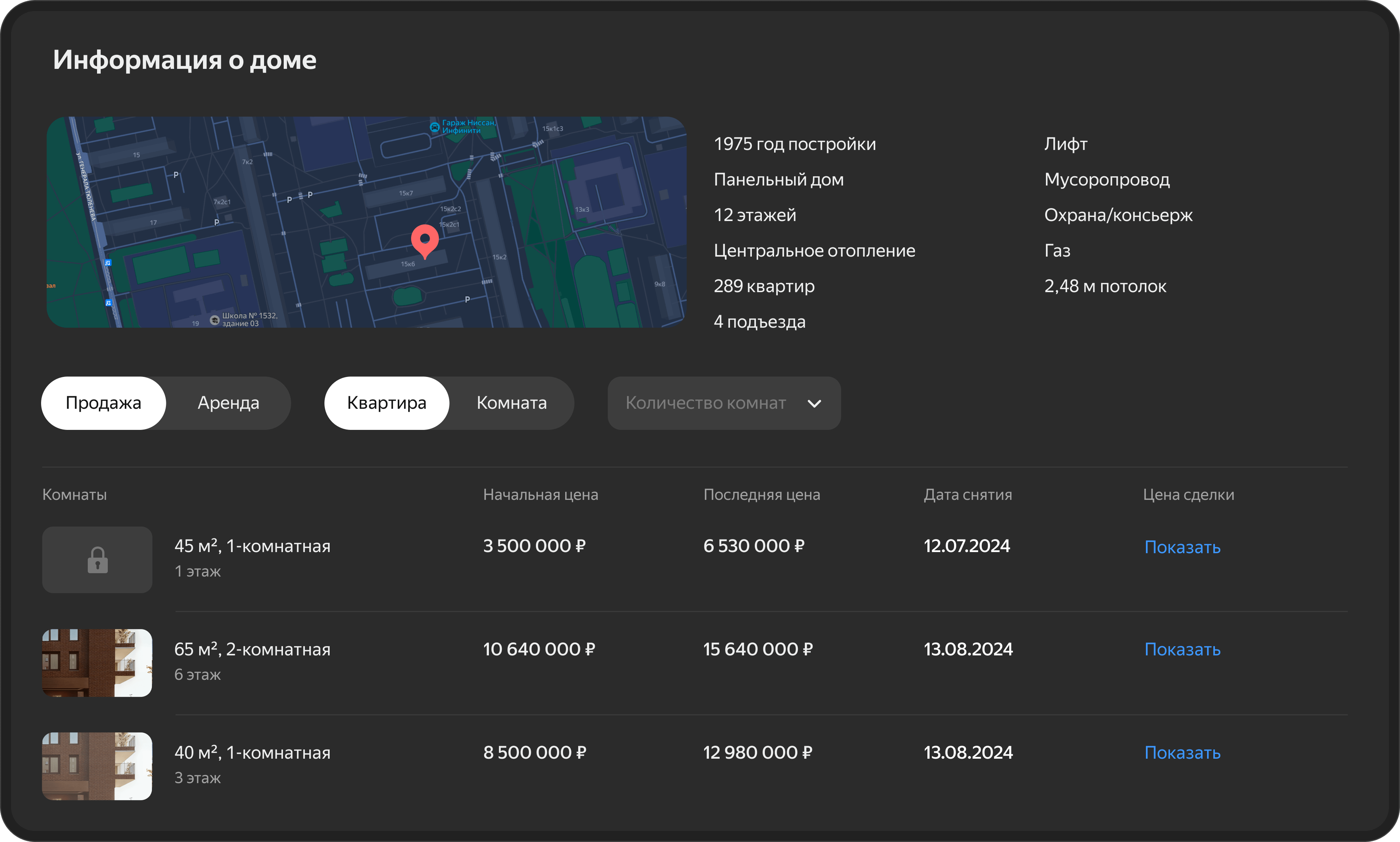 *Опция доступна отдельно. Направьте запрос на почту: partner-xml@realty.yandex.ru