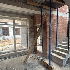 Внутренние конструкции не менее продуманы: несущие стены и межкомнатные перегородки выполнены из полнотелого керамического кирпича марки прочности М-125, что обеспечивает отличную звукоизоляцию и долговечность. Особый архитектурный акцент — кровля с террасами и надстройками, создающая дополнительные пространства для отдыха и расширяющая жилые возможности.