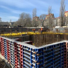 Жилой комплекс возведен по монолитно-каркасной технологии, гарантирующей надежность и долговечность конструкции. Фасады здания декорированы комбинацией клинкерной плитки, 3D-композитных панелей и декоративной штукатурки, что формирует современный архитектурный облик.